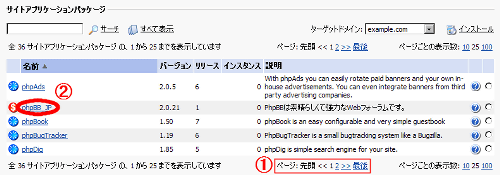 (1)を利用してサイトアプリケーションパッケージの名前がphpBBとある項目を探します。