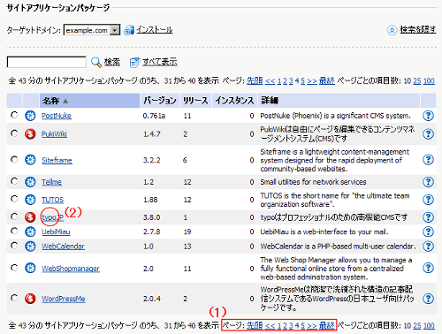 (1)を利用してサイトアプリケーションパッケージの名前がtypoJPとある項目を探します。