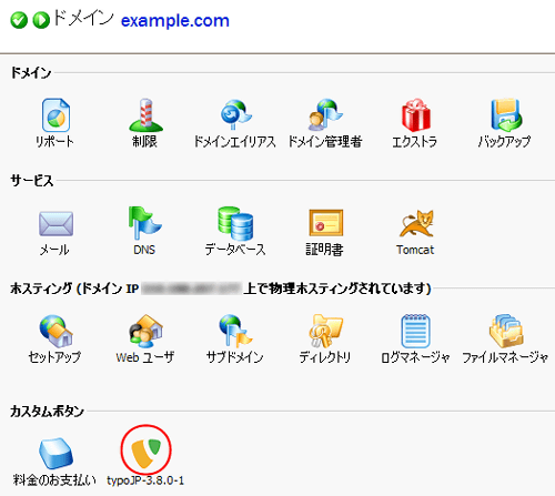 ログイン後のPleskコントロールパネルのメイン画面にこのようなアイコンが追加されます。