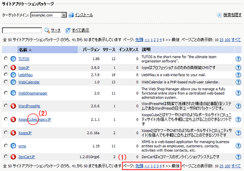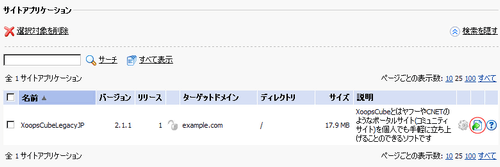 (1)を利用してサイトアプリケーションパッケージの名前がXOOPS Cube Legacy JPとある項目を探します。