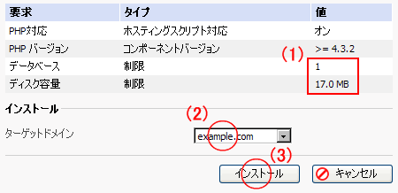 (簡単インストール機能を利用してXOOPS Cube(Legacy)を導入された場合別途利用料金が発生しますので、ご理解の上選択下さい)