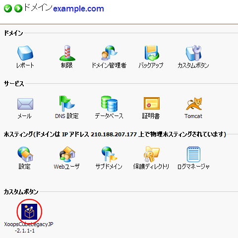 はい:PleskコントロールパネルにXOOPS Cube(Legacy)へのアクセスボタンを設置します。