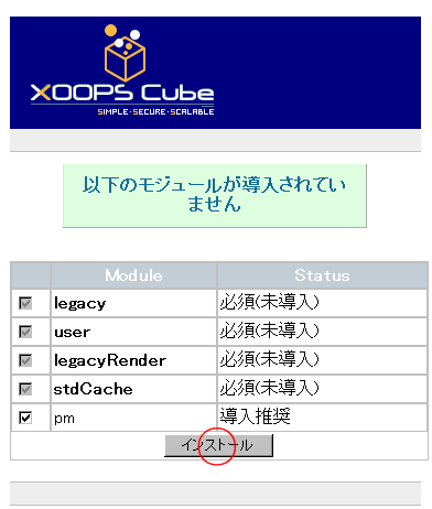 ログインに成功すると、下記のようなモジュール導入設定画面となります。