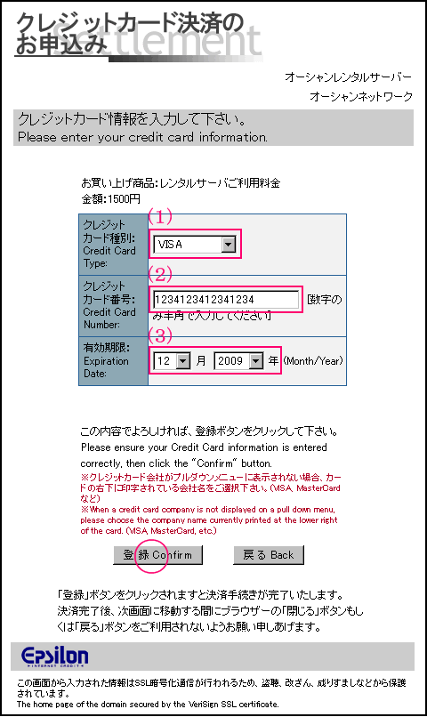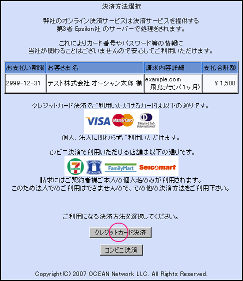 クレジットカード決済手順