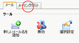 3.[メーリングリスト]のタブをクリックします