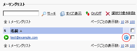 4.管理したいメーリングリストアドレスの右にある歯車アイコンをクリックします。