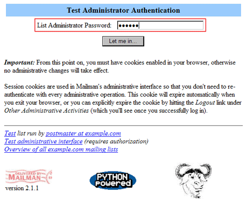 5.メーリングリストの作成時に入力したパスワードを利用して管理画面にログインします。