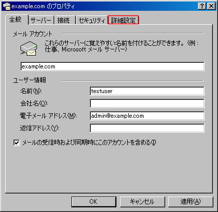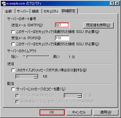他のメーラをご使用の方は同様の項目を探していただき設定をお願いします。