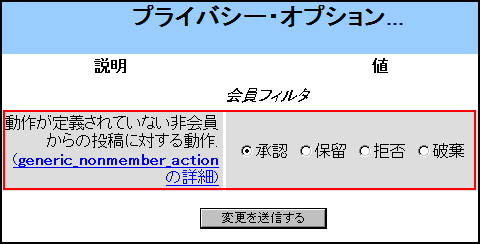 画面下部に「動作が定義されていない非会員からの投稿に対する動作」という項目がありますので